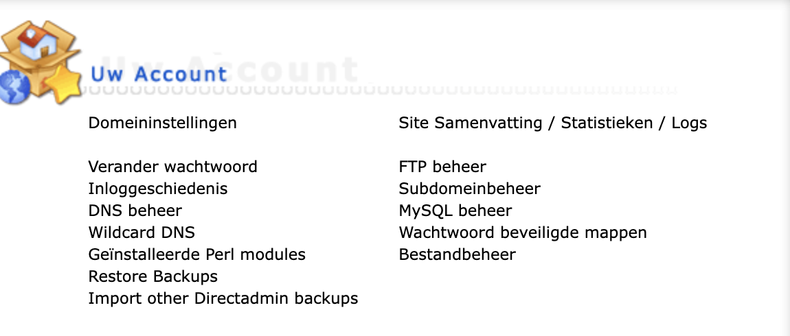 Om de DNS records in DirectAdmin te wijzigen dien je naar je DirectAdmin paneel te gaan. Je komt hier via je online Hostboss omgeving of via de directe link die je per e-mail hebt ontvangen. Lees hier hoe je hier precies komt.