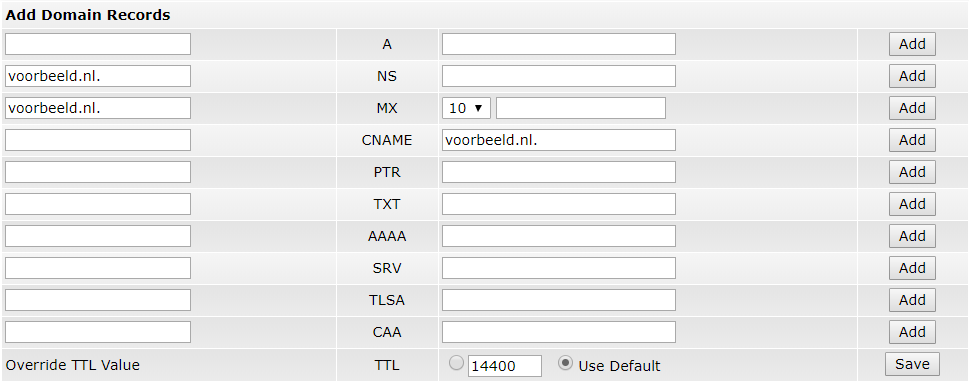 DNS records toevoegen